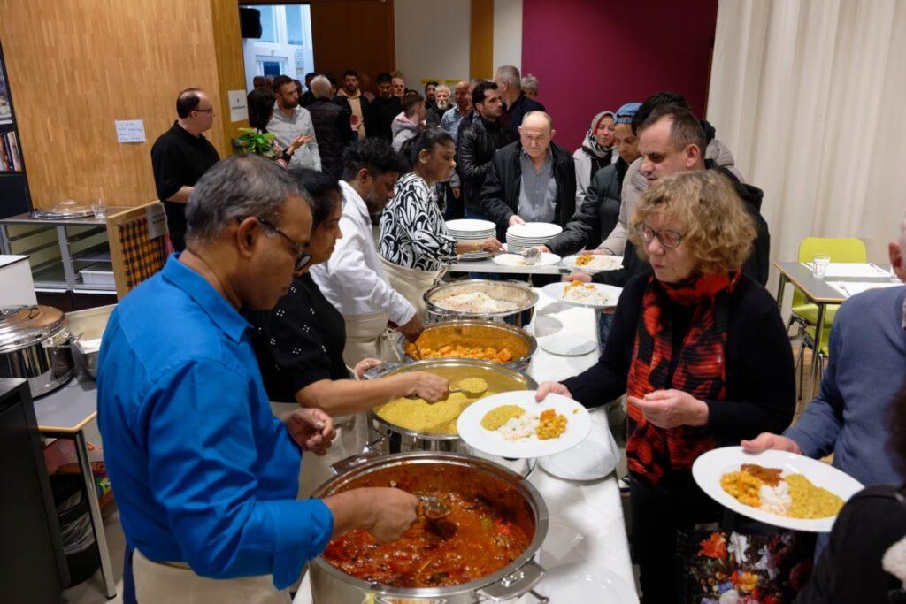 und Menschen zusammengebracht werden. Bei einem leckeren vegetarischen Curry im Restaurant Vanakam, während der Nacht der Religionen oder einer Filmaufführung lässt sich der Austausch besonders leicht erleben.